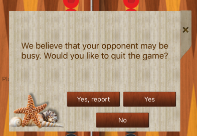 It came to our attention that the dialog that prompts a player to report the opponent because (s)he has not made any move within the given time, has an extra button. As you see on the screenshot, that dialog has the following buttons: